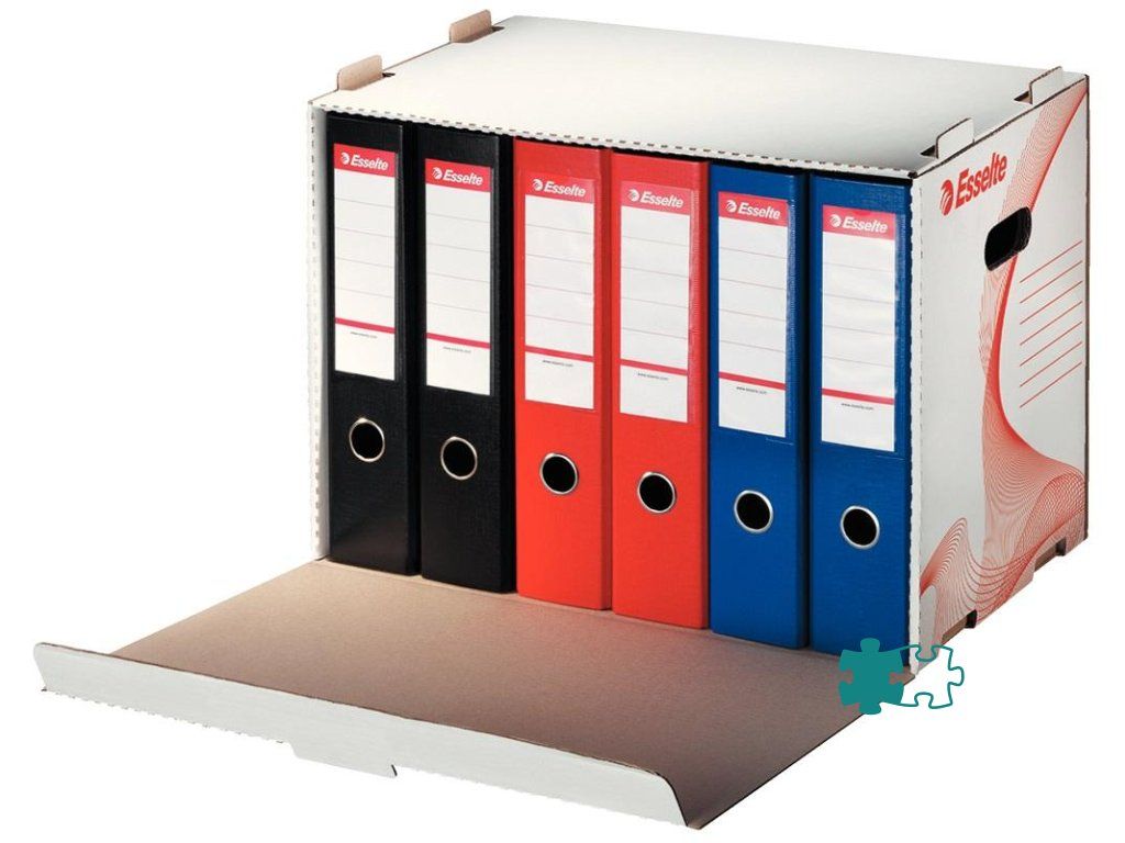 Archívna krabica na zakladače Esselte biela/červená 530x343x311 mm