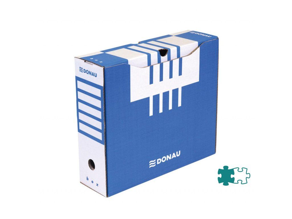 Archívny box z trojvrstvovej lepenky s certifikátom FSC® (drevo na jej výrobu pochádza z lesov, obhospodarovaných udržateľným spôsobom), bez obsahu kyseliny (pH 7,5). Vhodný na archiváciu dokumentov do formátu A4 s otvorom na ľahkú manipuláciu. Možnosť archivovať aj zakladač Donau. Predtlače na popis na dlhšej i kratšej strane umožňuje skladovanie vo vodorovnej aj zvislej polohe. Box je využiteľný samostatne alebo v kombinácii s archivačnými krabicami. Gramáž 390 g. Rozmery 297x100x339 mm. Väčšie balenie 20 ks.Chrbát: 100 mm