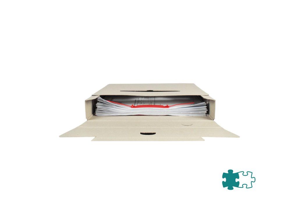 Ekologický výrobok. Box z recyklovateľnej špeciálne impregnovanej lepenky odolnej voči atmosferickej vlhkosti na dlhodobé uloženie záznamov. Tri varianty postavenia, kvalitná sieťotlač. Vhodný v kombinácii so skupinovým boxom. Väčšie balenie 25 ks. Rozmery (š x v x d) 50 x 330 x 260 mm.Dodatočné parametre