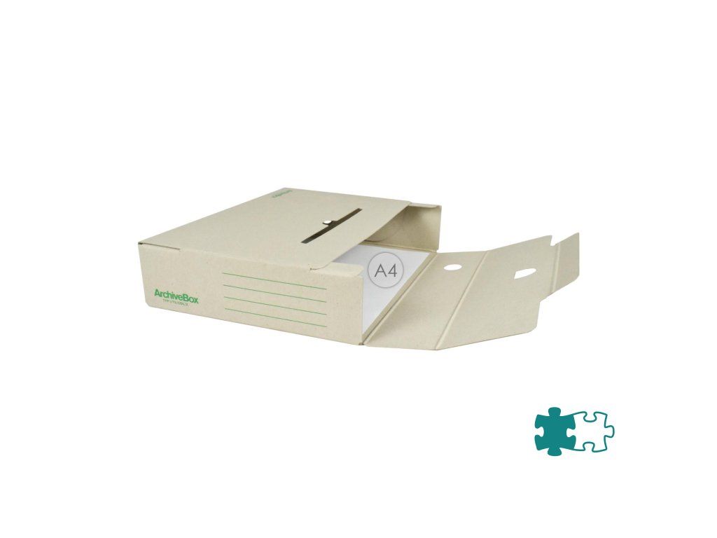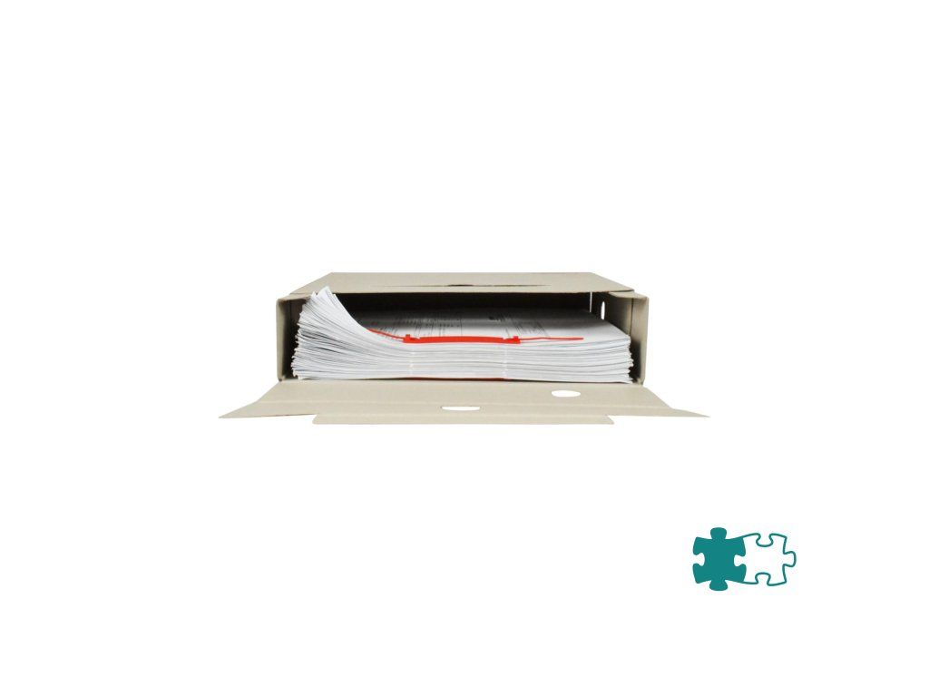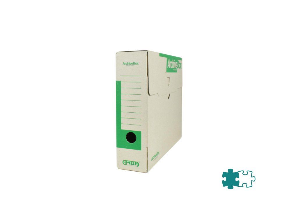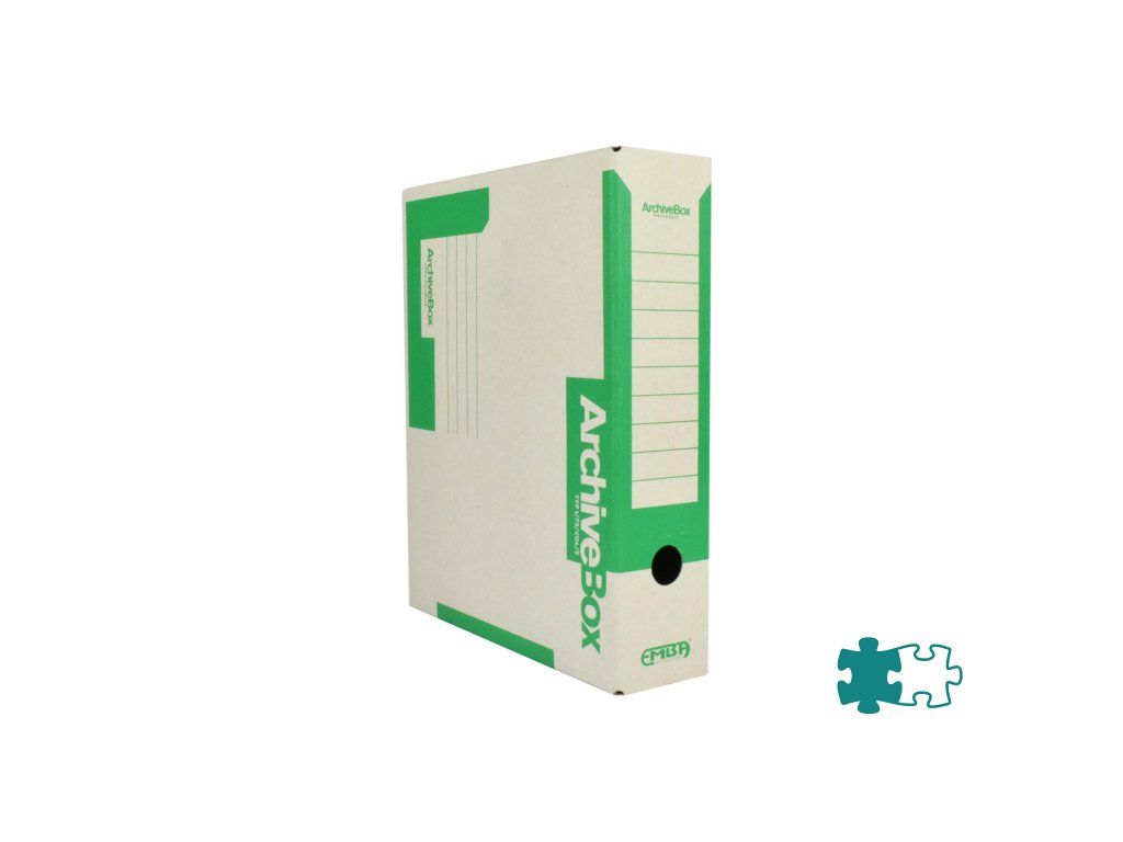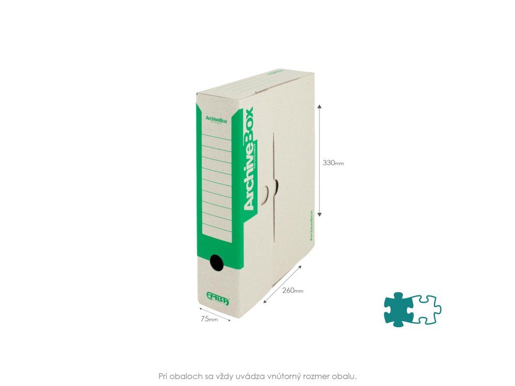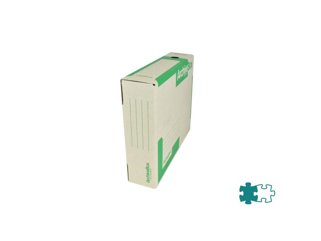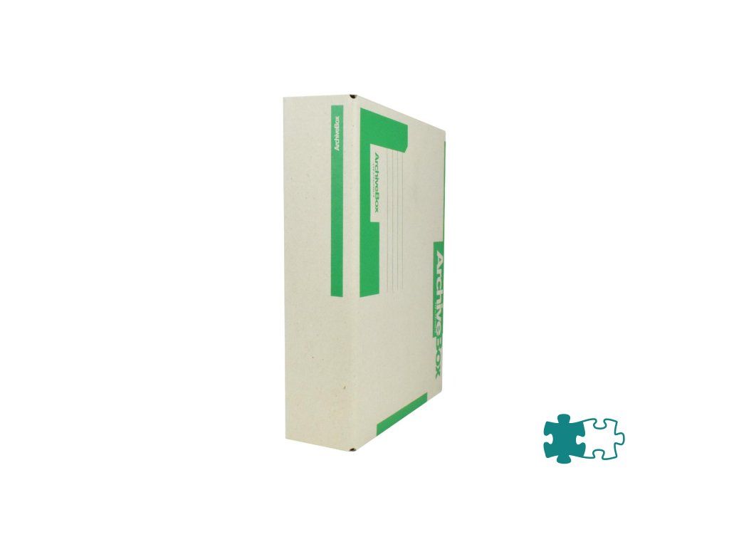 Systém archívnych boxov a škatúľ z vlnitej lepenky. Dodávané v rozloženom stave. Farba prírodná hnedá. Archívny box z hladkej ručnej lepenky, 1 000 g/ m². Konštrukčné riešenie boxu umožňuje rýchly prístup k vloženým dokumentom. Rozmery75 × 330 × 260 mm. Väčšie balenie 25 ks. Farba zelená.