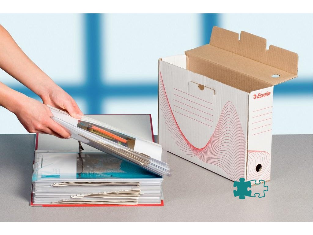Archívny box z recyklovaného kartónu vo sviežej farbe VIVIDA na archiváciu dokumentov do formátu A4 s otvorom na ľahkú manipuláciu. Predtlač na popis na dlhšej i kratšej strane umožňuje skladovanie vo vodorovnej aj zvislej polohe. Box je využiteľný samostatne alebo v kombinácii s archivačnými krabicami. Väčšie balenie 25 ks.Chrbát: 100 mm