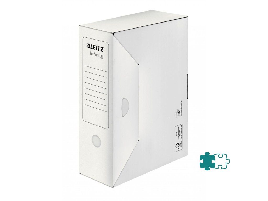 Špeciálny archivačný systém Leitz Infinity spĺňa všetky kritériá a požiadavky medzinárodnej normy ISO 16245 pre dlhodobú a náročnú archiváciu dokumentov. Je vyrobený z novo vyvinutej lepenky, ktorá je 100% acid free (alkalická).Odporúčané pre náročnú a dlhodobú archiváciu dokumentov v národných archívoch, múzeách, knižniciach aj v súkromných organizáciách. Vyrobené z lepenky, ktorá je 100% virgin, Acid Free, FREE podľa normy ISO 16245 pre ochranu dokumentov. Inovatívna konštrukcia rýchleho zloženia, ktorá šetrí čas a energiu, zložená za pár sekúnd. Dvojité bočnice chránia škatuľu pred otvorením a spevňujú okolie chrbtového úchytu. Ideálna veľkosť pre archiváciu v policiach, určené pre vertikálnu a horizontálnu archiváciu. Vďaka ľahkej vlnitej lepenke je škatuľa pevná a odolná.