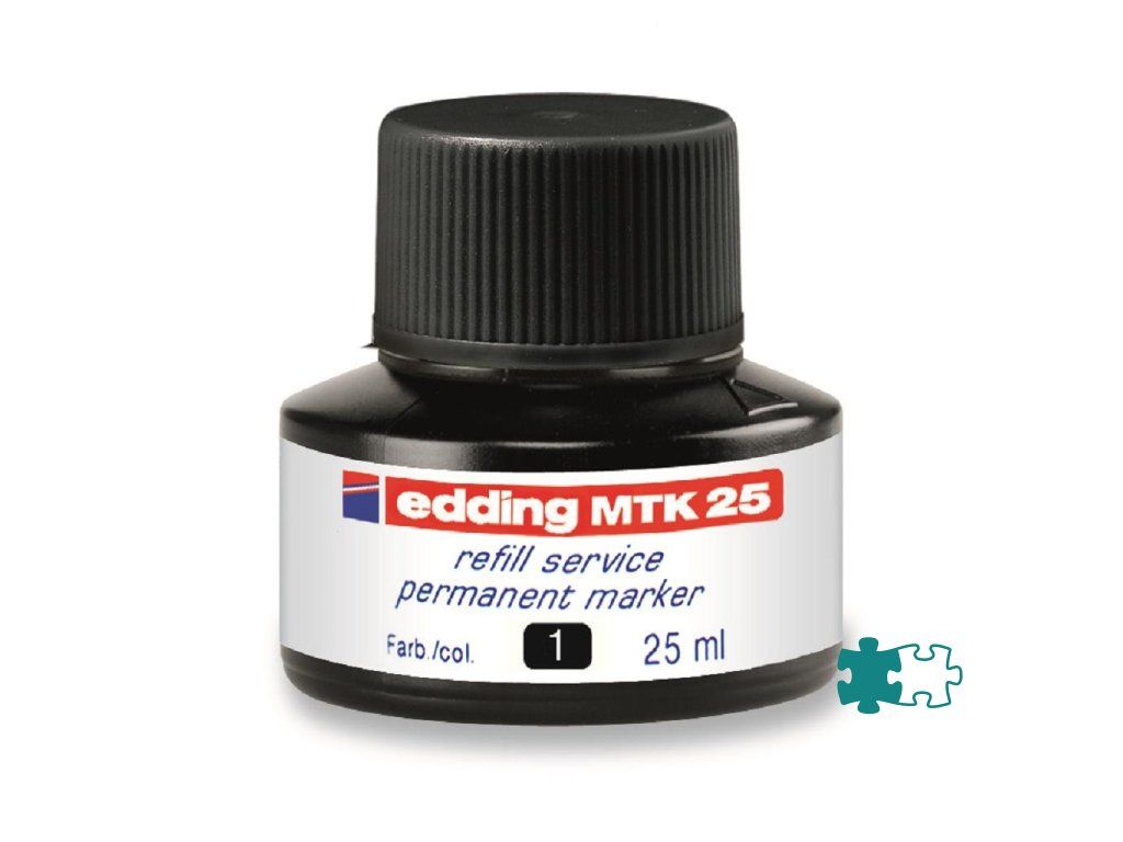 Atrament slabého zápachu s kapilárnym systémom na dopĺňanie permanentných popisovačov edding 2000/-2000 C, 2200/-2200 C, 400, 300, 330 a 370. Obsah 25 ml. Tento chemický prípravok je nebezpečný. Pri dopĺňaní vložte prednú časť popisovača špičkou do fľaštičky a po niekoľkých minútach bude popisovač pripravený k opätovnému použitiu. Obsah 25 ml.Farba: čierna