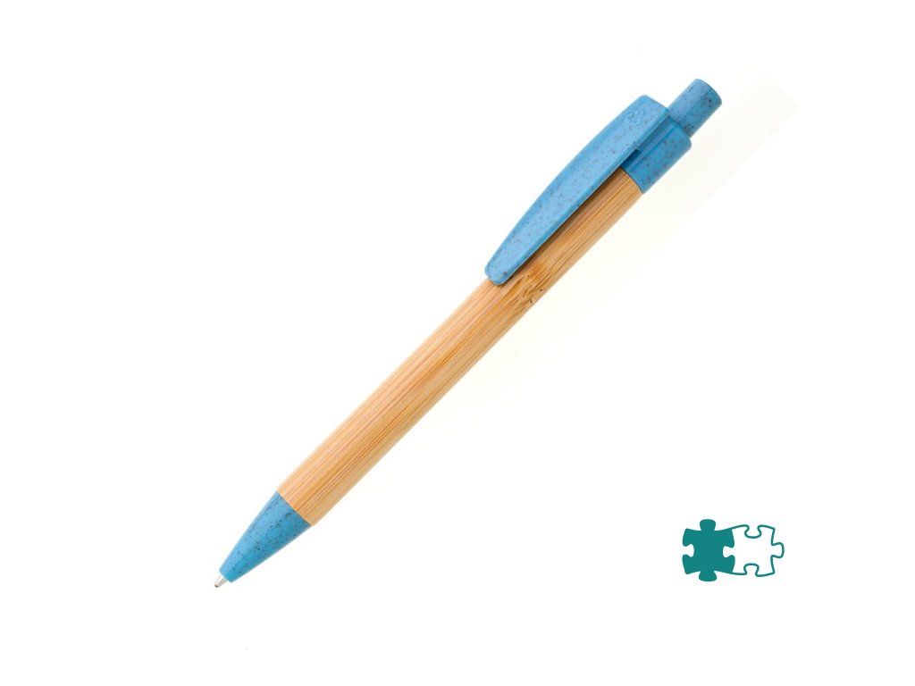 Bambusové telo pera s doplnkami z plastu s podielom slamy. Náplň modro píšuca veľkoobsahová. Farba modrá.Dodatočné parametre