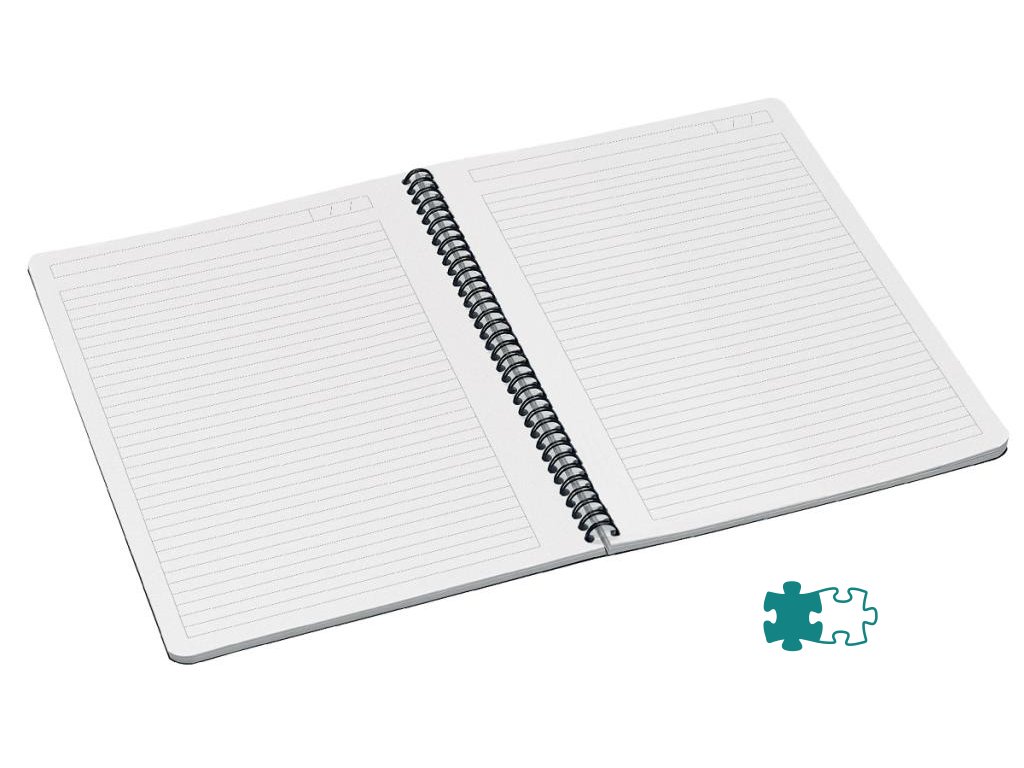 -Drôtená väzba umožňuje otvorenie poznámkového bloku v rozsahu 360 stupňov, prehnutý na polovicu môže poslúžiť ako podložka na písanie poznámok na cestách.