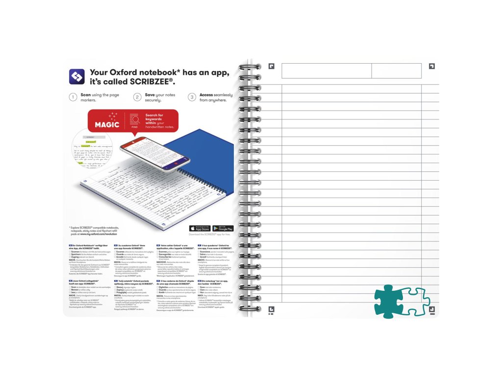 Blok s dvojitou špirálou, ktorá zabezpečuje otváranie strán o 360 °. Kompatibilný so SCRIBZEE. Listy s dierovaním, 6 mm linkovanie so záhlavím. Dosky z mäkkého, odolného laminovaného kartónu. Extra jemný a hladký papier Optik gramáže 90 g/m², u ktorého nedochádza k presakovaniu atramentu na druhú stranu. Vnútorné a vonkajšie okraje. Dodávané v mixe farieb. Formát A5. 90 listov. Úprava linajková.Dodatočné parametre