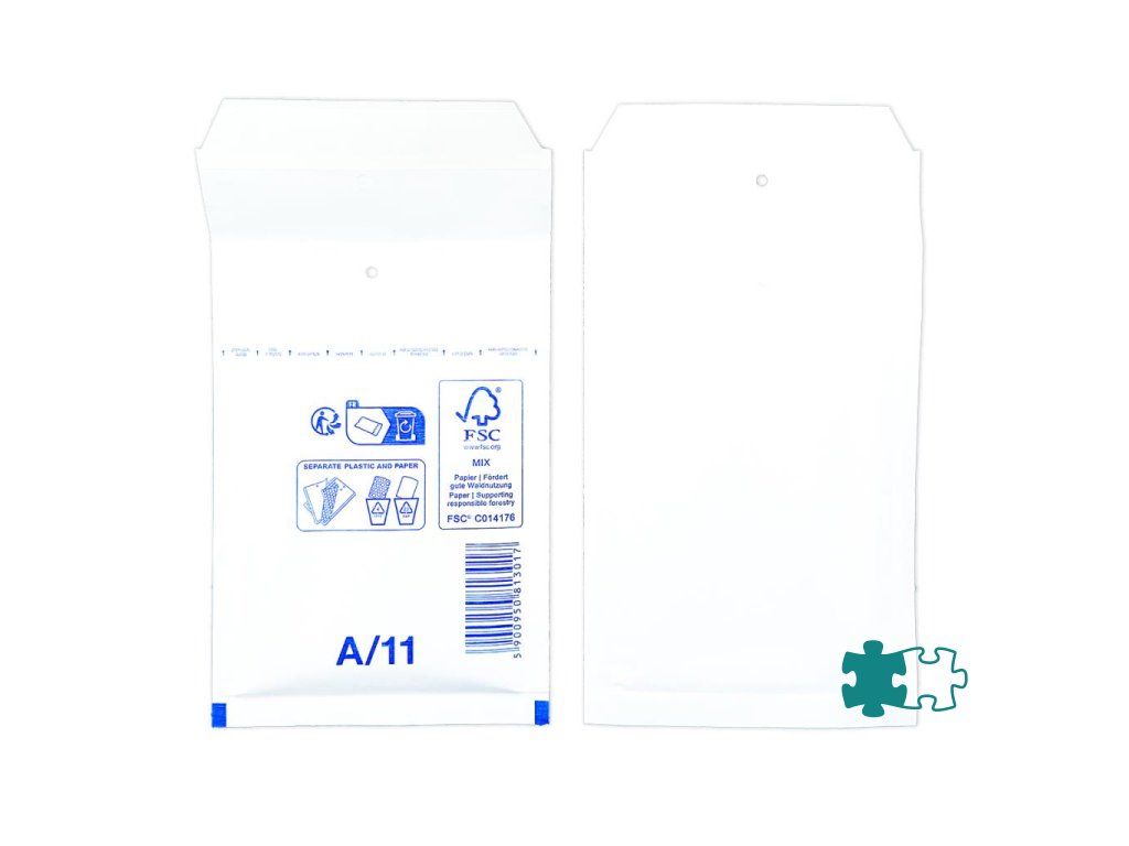 Extrémne ľahké, bezpečné a hospodárne obálky. Jednoduchý spôsob balenia samolepiacim uzáverom. Vďaka špeciálnej fólii s vankúšikmi, plnenými vzduchom a papieru Kraft, potiahnutému polyetylénom, sú obálky elastické a odolné voči roztrhnutiu a vode. Farba biela. Vnútorný rozmer 10 x 16,5 cm.Kód : A11