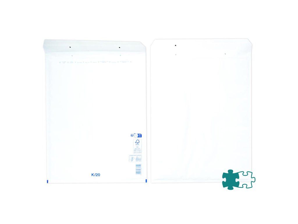 Extrémne ľahké, bezpečné a hospodárne obálky. Jednoduchý spôsob balenia samolepiacim uzáverom. Vďaka špeciálnej fólii s vankúšikmi, plnenými vzduchom a papieru Kraft, potiahnutému polyetylénom, sú obálky elastické a odolné voči roztrhnutiu a vode. Farba biela. Vnútorný rozmer 34 x 48 cm.Kód : K20