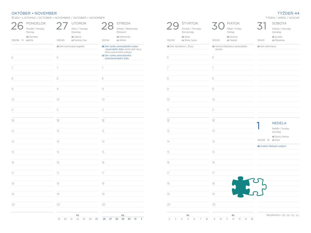 Formát: A5, 148 x 210 mm, týždennýJazyk: SK