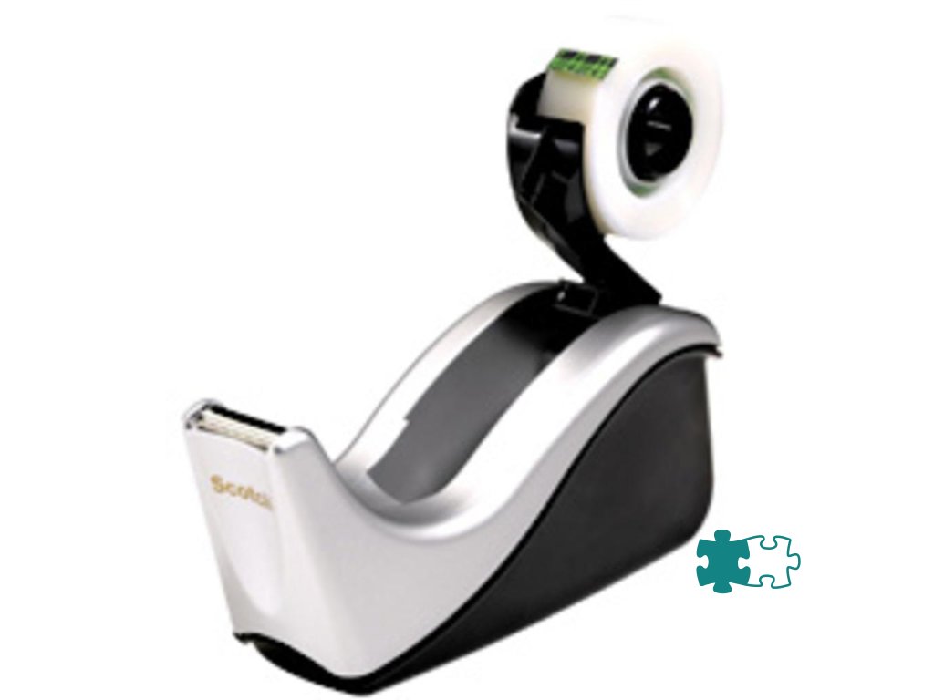 Vyvážený odvíjač pásky na jednoduché odvinutie a odrezanie pásky jednou rukou. S odvíjačom pásky Scotch® vždy nájdete koniec lepiacej pásky