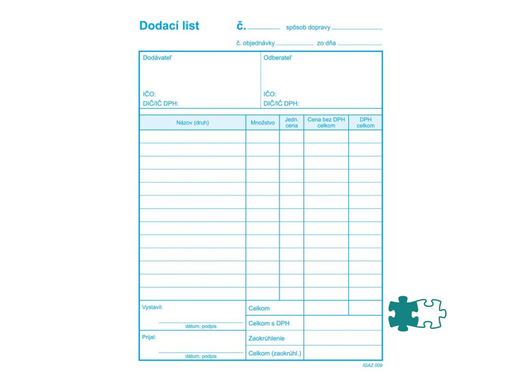 Obchodné tlačivo. Dodací list s DPH, samoprepis, A5, 100 listov.Dodatočné parametre