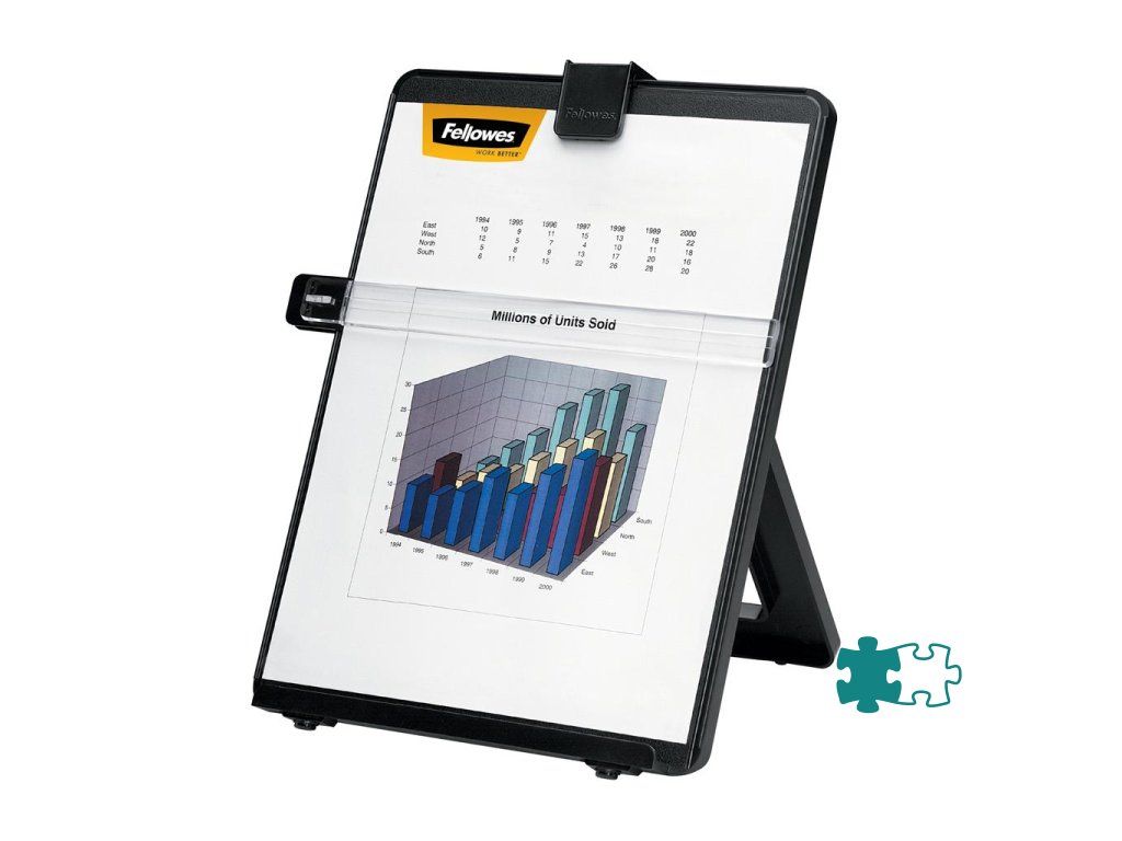Držiak s nastaviteľným uhlom čítania. Pre papiere do hrúbky 10 mm. Pevné držanie papiera, posuvné riadkové pravítko.Farba: čierna