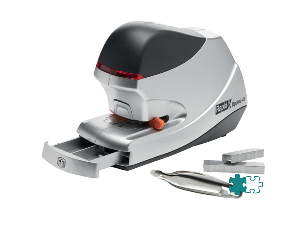 Bez námahy zošíva veľké štósy až 45 hárkov papiera. Vodidlo umožňuje presné umiestnenie drôtikov na papier. Drôtiky Optima HD70 zošívajú bez toho, aby sa zasekávali. Integrovaný LED indikátor nízkeho počtu drôtikov vás upozorní, že v zásobníku dochádzajú drôtiky. Automatická elektrická zošívačka. Napájanie sieťovým adaptérom. Drôtiky sú súčasťou balenia.Zošívanie pomocou drôtikov Optima HD70, ktoré sa nezasekávajú, súčasťou produktu je balenie 5000 drôtikov. Súčasťou je vyberač drôtikov. Napájanie adaptérom (súčasťou balenia). Farba strieborná.Dodatočné parametre