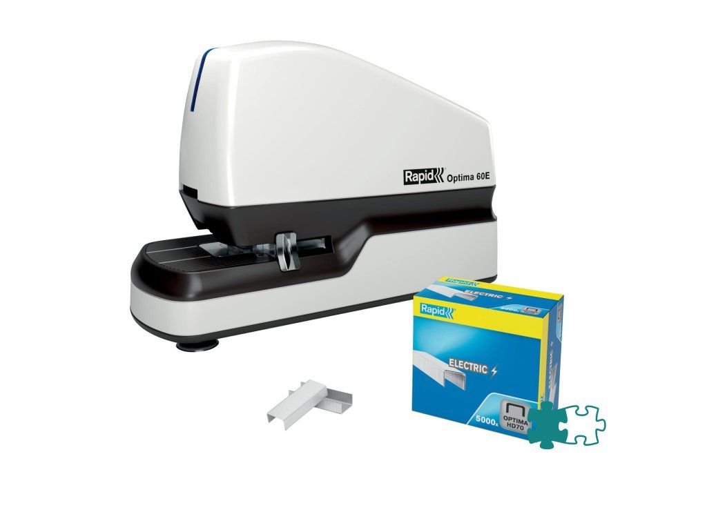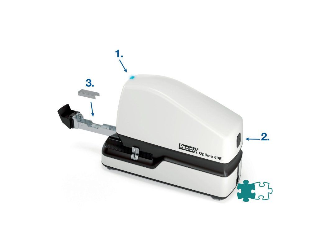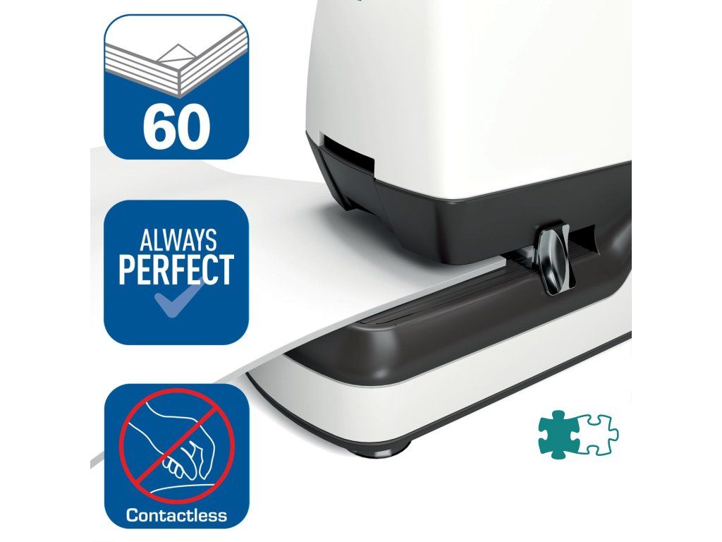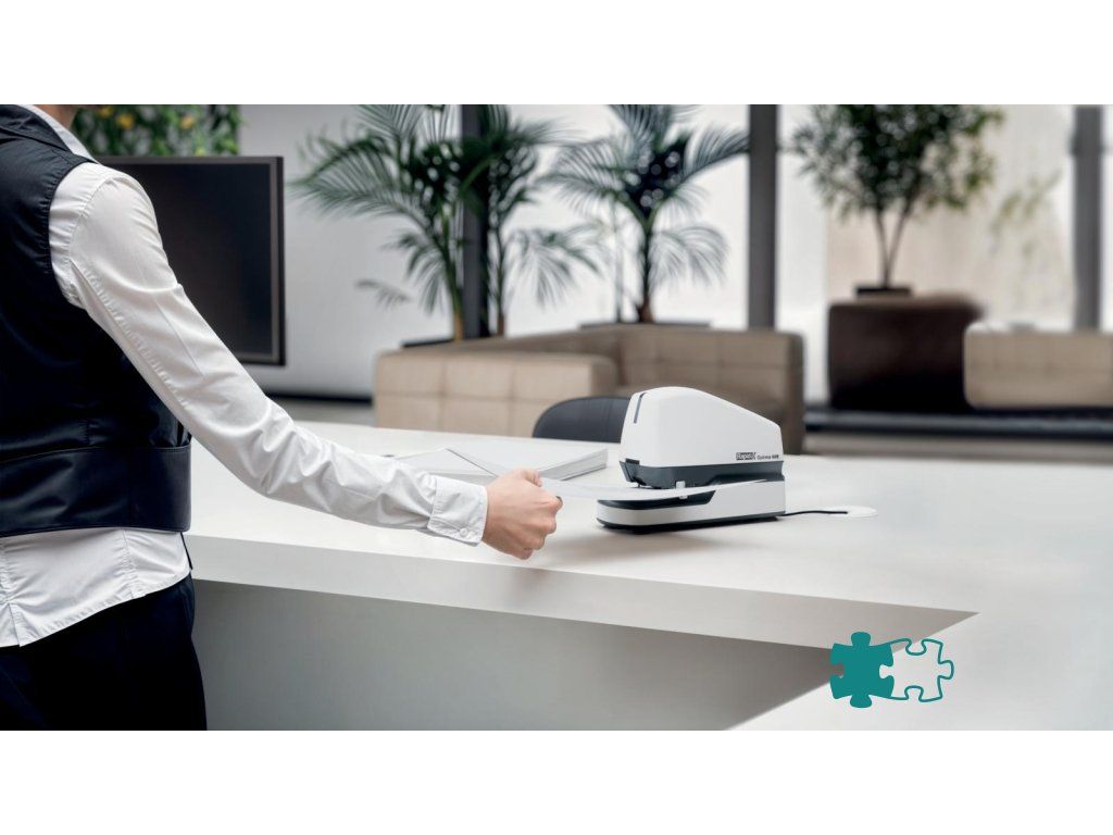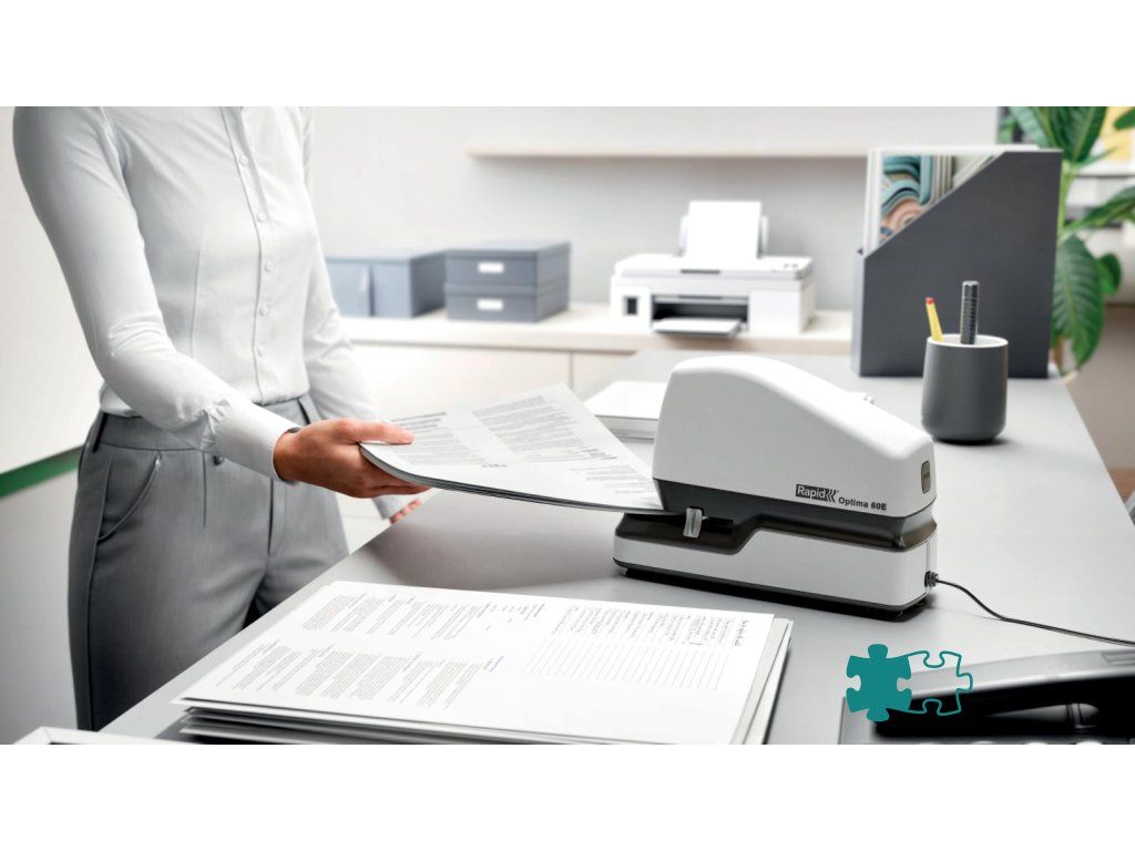 Optima 60E zabezpečí výkonné a bezproblémové zošívanie. Bez námahy zošije stoh až 60 listov papiera naraz (80 g/m2) a ušetrí váš čas doma alebo v práci. Kompaktná zošívačka so štandardným zošívaním je plnoautomatická a umožňuje hygienické zošívanie vďaka bezdotykovej prevádzke. Nastaviteľná hĺbka vkladania papiera a vodidlo na umiestnenie zošívacích sponiek umožňujú flexibilné a zároveň presné zošívanie. Vďaka LED indikátoru nízkeho počtu sponiek sa vám nestane, že bude uprostred zošívania zásobník na drôtiky zrazu prázdny. Ponúkajú zošívanie bez zasekávania sponiek. Napájanie pomocou sieťového adaptéra (je súčasťou balenia). Zároveň je pribalená aj balenie 5000 ks sponiek Optima HD70.