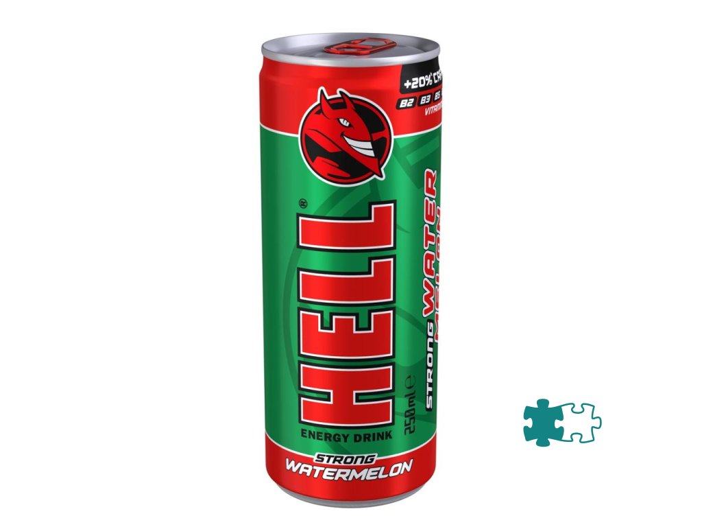 Letná chuť HELL STRONG WATERMELON s príchuťou vodného melónu, o 20 % viac kofeínu namiesto 32 mg / 100 ml, bez konzervantov, s prídavkom 5 druhov vitamínov B, v nekonečne recyklovateľnom obale na vás čaká, aby sa stal súčasťou vášho každodenného života.Obsahuje vitamíny: B2, B3, B5, B6, B12