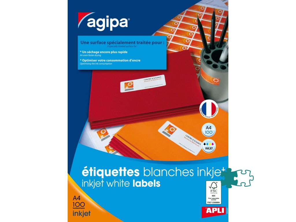 Etikety inkjet 63,5x33,9mm Agipa A4 100 hárkov