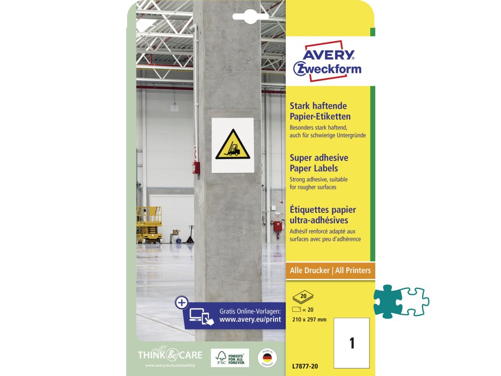 Etikety univerzálne 210x297mm Avery A4, silne lepivé 20 hárkov