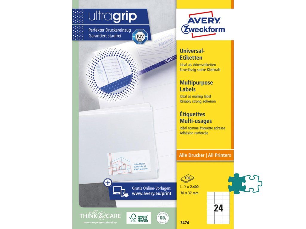 Etikety univerzálne 70x37mm Avery A4 100 hárkov