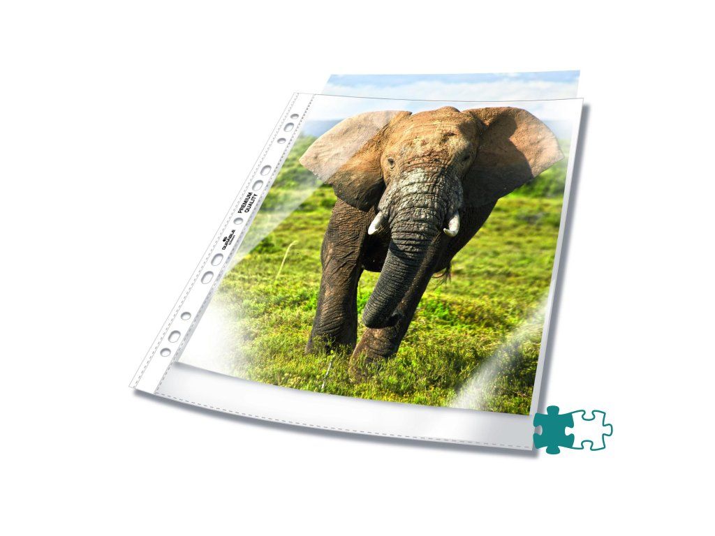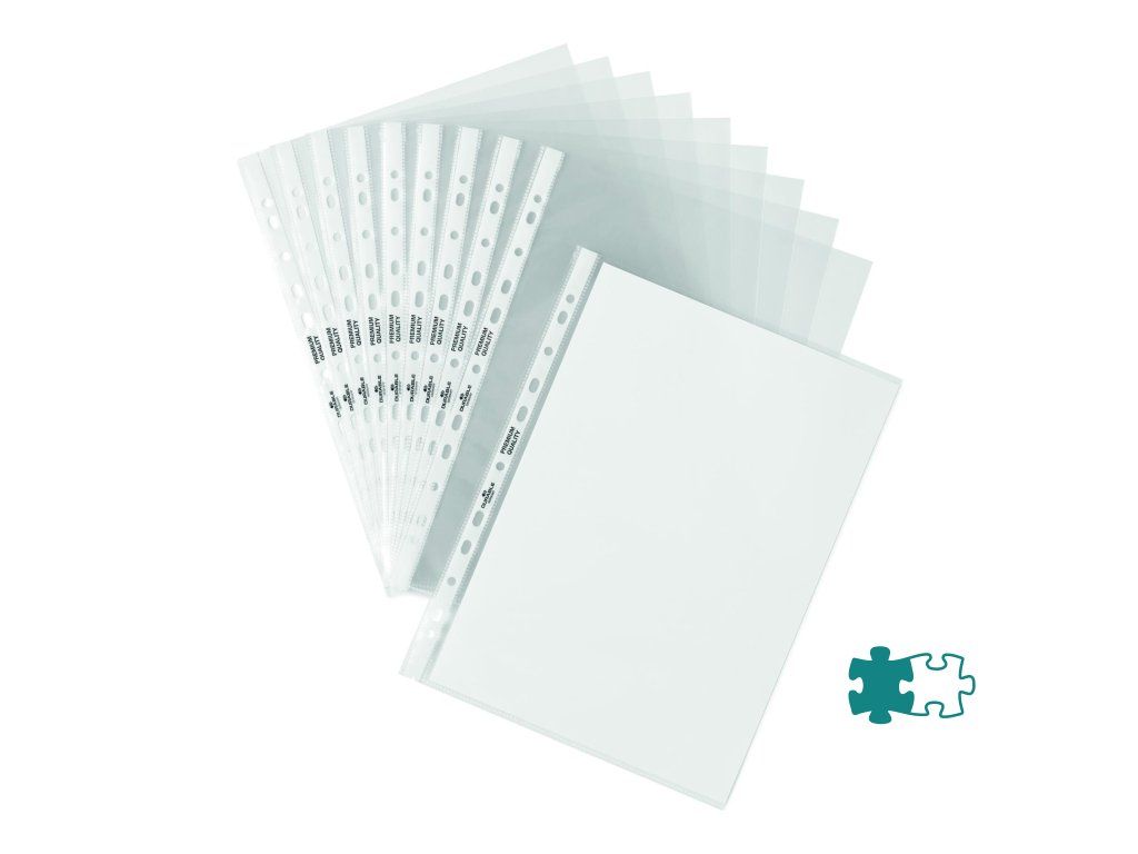 Obaly s eurodierovaním vhodné na zakladanie materiálov rozšíreného formátu A4. Povrch lesklý. Otvor zhora. Vnútorné rozmery obalu 304 × 220 mm. Balené v sáčku. Hrúbka 90 mic.. Balenie 50 ks.Dodatočné parametre