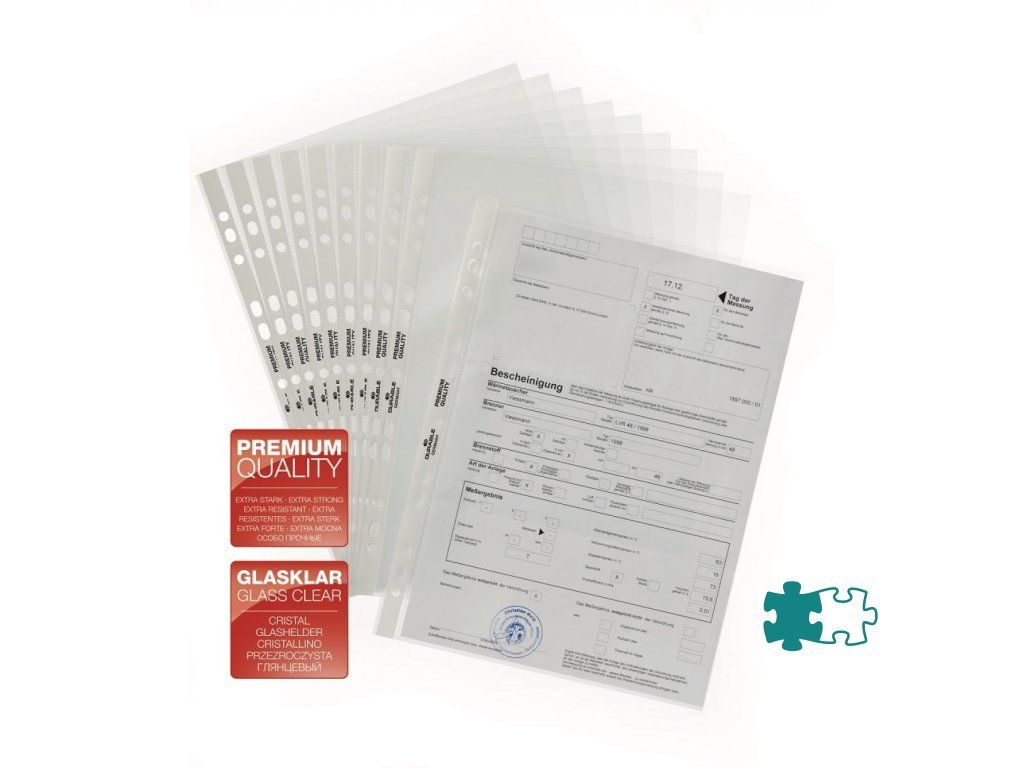 Priehľadný číry euroobal z polypropylénu. Otvor zhora, eurodierovanie, povrch lesklý a hladký. Formát A4. Balenie 100 ks v sáčku.Hrúbka: 80 mic.