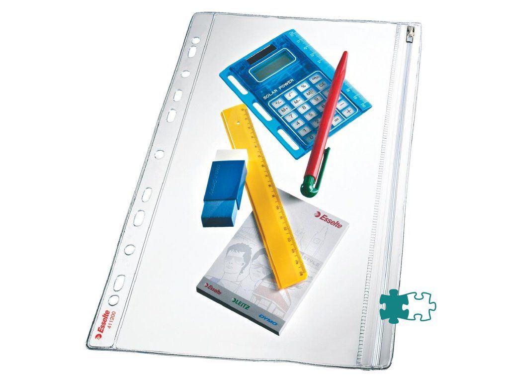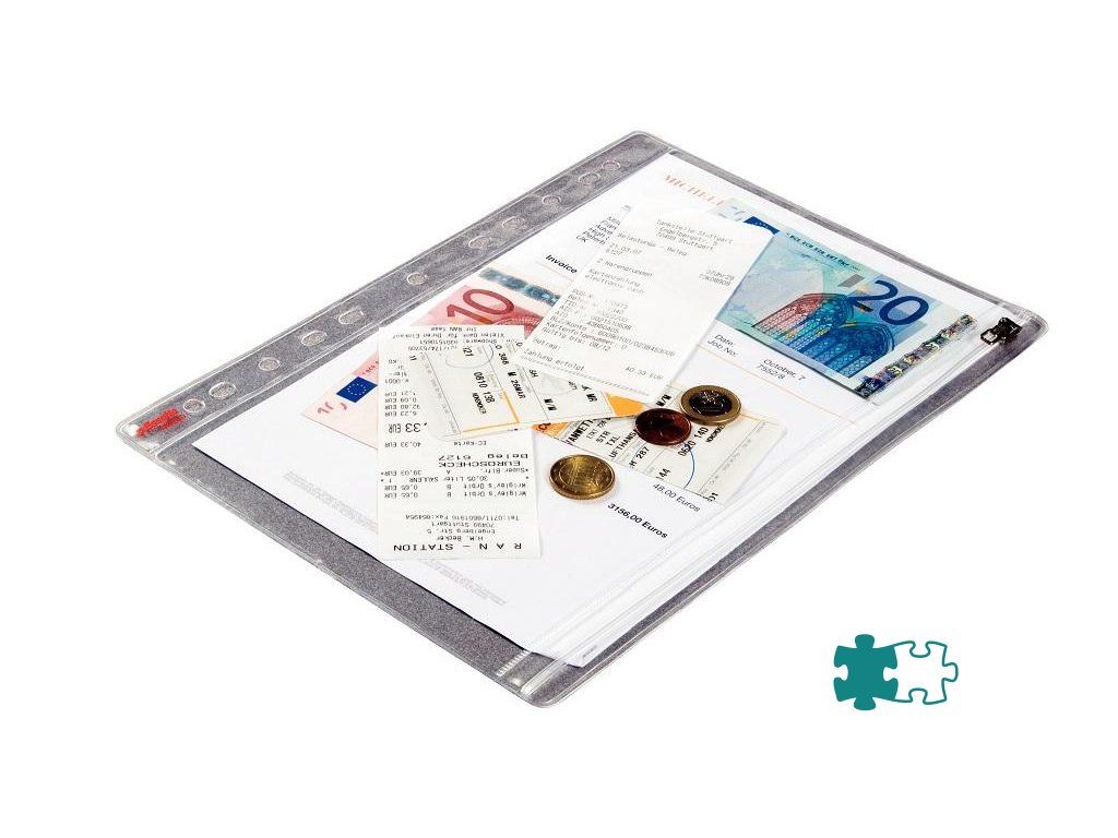 Praktický priehľadný obal A4 s eurodierovaním a kovovým zipsom na uloženie kancelárskych drobností. Balenie 5 ks.Formát: A4