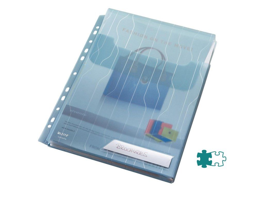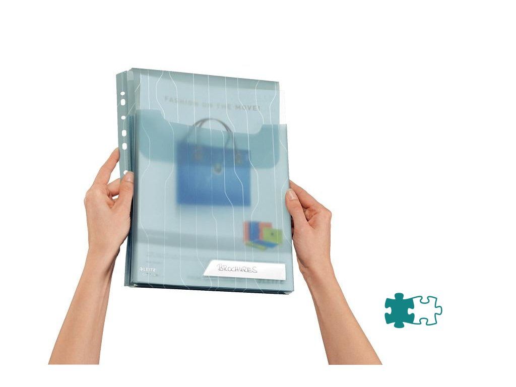 Závesný obal na katalógy a obsiahlejšie dokumenty, ktorý kombinuje vlastnosti euroobalov a obalov vďaka patentovanej skrývateľnej multiperforácii do špeciálneho puzdra. Vyrobený z kvalitného priehľadného PP s embosovaným vzorom. Hrúbka 200 um. Kapacita 150 listov papiera formátu A4. Balenie 3 ks.Farba: modrá