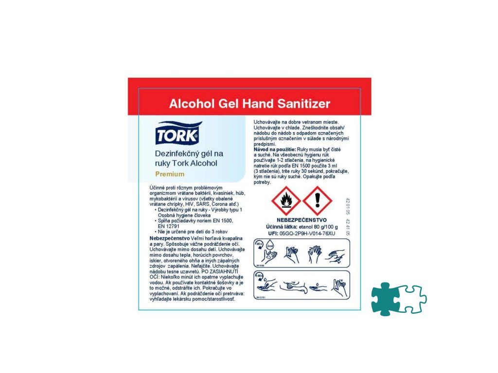 Tork Alcohol gélový dezinfekčný prostriedok s 80 % obsahom denaturovaného liehu efektívne ničí mikroorganizmy a pomáha tak predísť šíreniu infekcií. Efektívny voči rôznym organizmom vrátane obalených vírusov, norovírusov a rotavírusov. Ideálny na každodennú hygienu rúk aj v zdravotníctve. Vhodné na použitie s Tork zásobníkom na mydlá a dezinfekčné prostriedky (S4).Účinné voči rôznym problémovým organizmom - spĺňa normy EN1500, EN 12791 a EN14476 (všetky obalené vírusy, ako sú HIV, SARS, korona, HBV, HCV, chrípka H1N1, H5N1 atď. a aj rotavírus a norovírus).