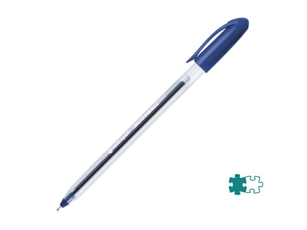 Guľôčkové pero v trojuholníkovom tvare s ergo úchytom s veľmi hladkým písaním. Priehľadné telo, nový nízko viskózny atrament v sýtych farbách. Ihlový hrot s guľôčkou, šírka stopy 0,3 mm. Väčšie balenie 12 ks.Farba náplne: modrá