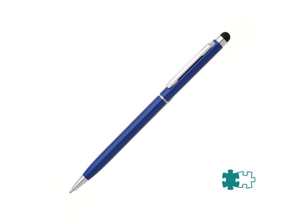Tenké kovové guľôčkové pero s otočným mechanizmom a hrotom pre ovládanie dotykovej obrazovky. Strieborné chrómové doplnky, modrá náplň cross. Materiál hliník.Dodatočné parametre