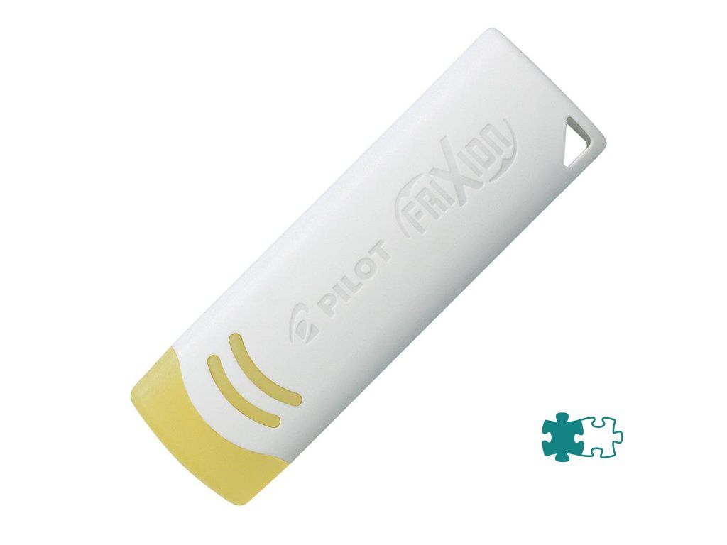 FriXion gumy, unikátne gumy určené výhradne pre fanúšikov gumovacích pier Pilot FriXion. Vždy pripravené k použitiu na stole alebo v puzdre s perom. Je to perfektný nástroj, s ktorým môžete napísané odstrániť a začať znova. Farba biela.Dodatočné parametre