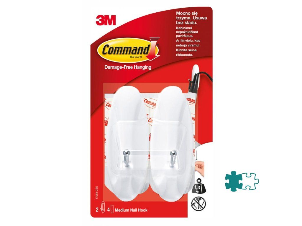 Samolepiace háčiky, opakovane použiteľné vďaka náhradnými pásikom. Jednoduchá aplikácia bez vŕtania. Sú odstrániteľné bez poškodenia povrchu. Nosnosť háčika 0,9 kg. Farba biela. Obsah balenia 2 háčiky, 4 lepiace pásky.Dodatočné parametre