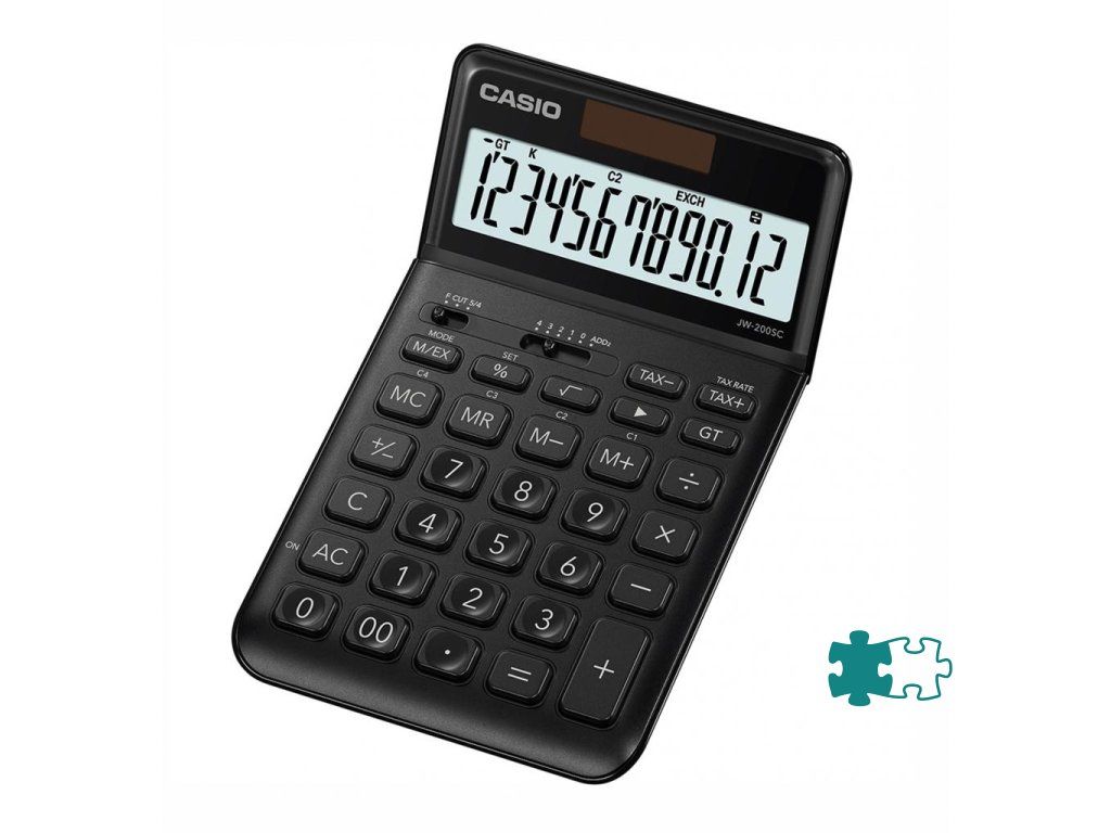 Stolová kalkulačka s veľkým 12-miestnym naklápacím LCD displejom so zobrazením funkcií a kovovým farebným krytom. Opravné tlačidlo a tlačidlá na výpočet odmocniny, daní a prevody mien. Farba čierna.Technická špecifi kácia: