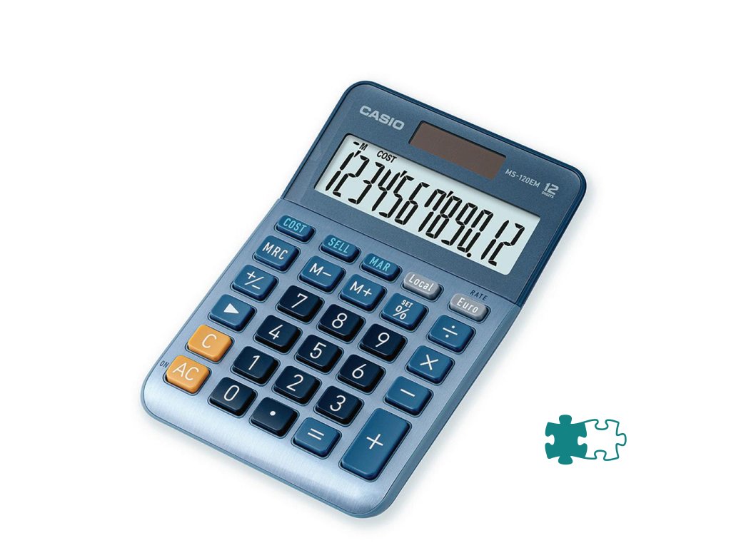 Stolové kalkulačky s 12‑miestnym nakloneným displejom a plastovými tlačidlami. Obsahujú tlačidlá na výpočet marže.Technická špecifikácia: