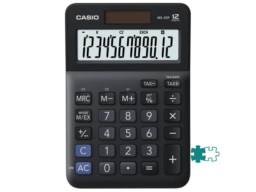 Stolová kalkulačka s veľkým 12-miestnym maticovým displejom, plastovými tlačidlami a pomocnými tlačidlami na výpočet daní. Výpočet %, 3 tlačidlá na prácu s pamäťou, zmeny znamienka +/-, funkcia TAX pre výpočet dane, zobrazenie použitej funkcie +,, ×, ÷, označenie oddeľovania po tisícoch, ukladanie operácií do vyrovnávacej pamäte, konverzia času, duálne napájanie (solárne + batéria), rozmery 103×145×31 mm.Dodatočné parametre