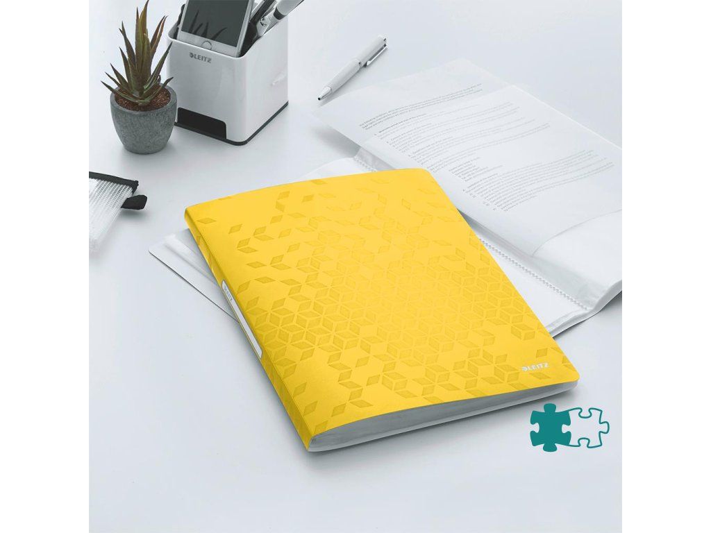 Katalógová kniha na prezentáciu dokumentov formátu A4, do ktorých sa často nahliada. Vyrobená z polypropylénu v dizajne WOW v žiarivých farbách. Vybavená 20 čírymi vreckami hrúbky 45 mic. a samolepiacou chrbtovou etiketou na popis. Väčšie balenie 10 ks. Kapacita 40 listov. Rozmery (š × v × h) 231 × 310 × 13 mm. Farba žltá.Dodatočné parametre