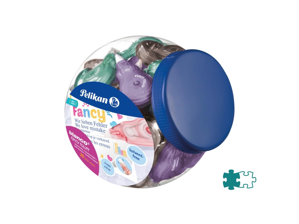 Korekčný roller Fancy 917 CB - 5 mm x 6 m, päť farieb (fialový, ružový, sivý, modrý, zelený). Balenie v dóze - 20 ks.Dodatočné parametre