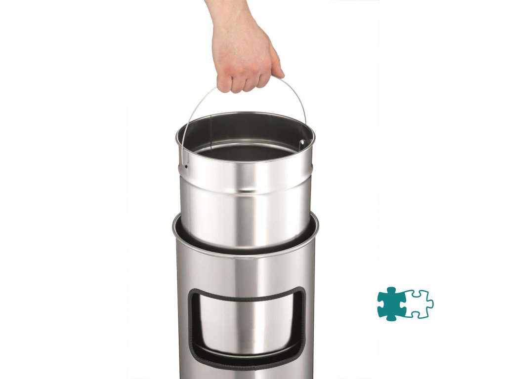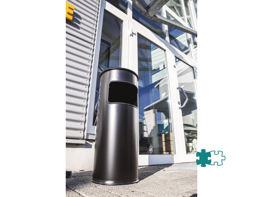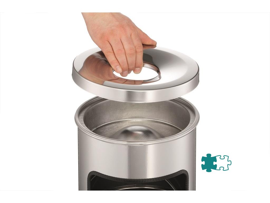 Kovový kôš na odpadky a popolník v jednom. Vhodný na použitie do interiéru aj exteriéru. Bezpečnostné samohasiace hliníkové veko. Objem koša 17 l, výška 630 mm, priemer 250 mm. Objem popolníka 2 l, výška 60 mm, priemer 240 mm.Farba čierna.