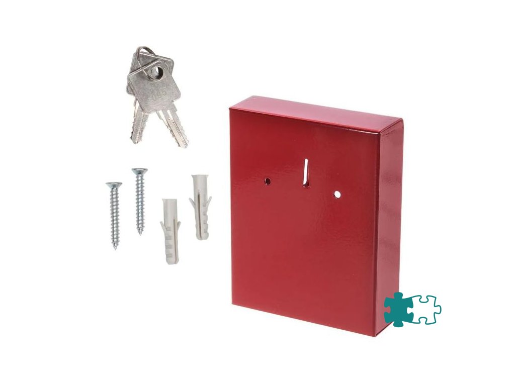 Kovová skrinka na núdzový kľúč bez kladivka, v.15 x š.12 x h.3,2 cm, červená