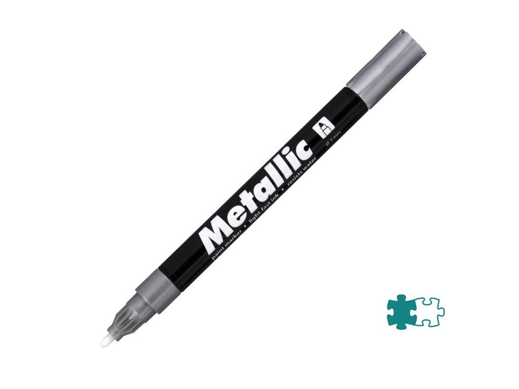Lakový popisovač na neporézne povrchy. Svetlostály atrament po zaschnutí odolá vode, poveternostným vplyvom aj oderu. Hrot okrúhly, šírka stopy 1,5 mm. Väčšie balenie 10 ks v jednej farbe. Farba strieborná.Dodatočné parametre