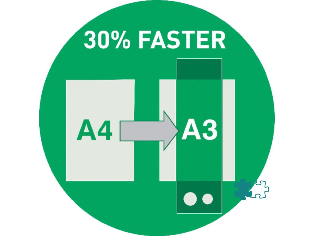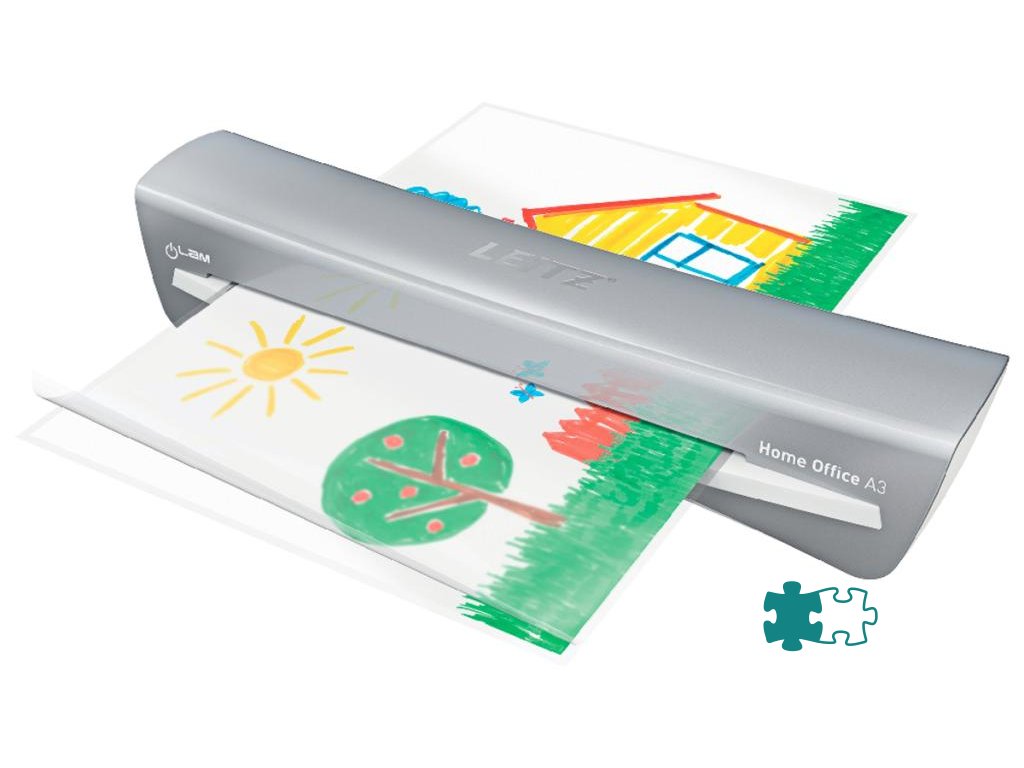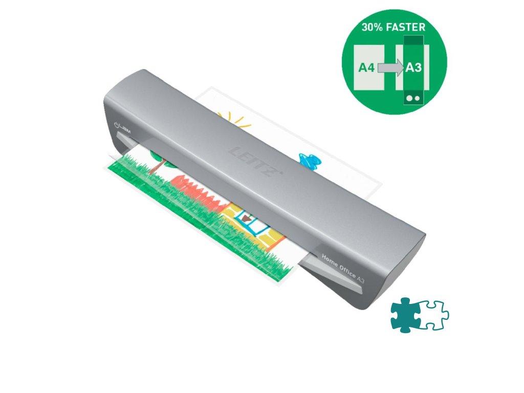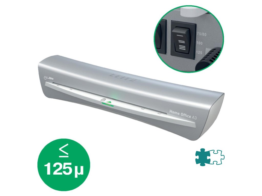 Štýlový a kompaktný laminovací prístroj Leitz iLAM Home Office spája moderný dizajn s funkčnosťou. Tento pre obsluhu prívetivý laminátor vo formáte A3 ponúka rýchle 2-minútové zahriatie a dokument A4 v 80-mikrónovej kapse na laminovanie zalaminuje už za obyčajných 45 sekúnd. Kolískový prepínač umožňuje výber z troch úrovní hrúbky kapsy na všestranné použitie a splnenie všetkých požiadaviek na laminovanie. Hladkú prevádzku zabezpečuje mechanizmus proti zaseknutiu kapsy tak, že bez námahy odstráni akékoľvek zaseknuté alebo zle vložené vrecká na laminovanie. Inovatívna inteligentná stavová LED dióda uľahčuje používanie pomocou intuitívnych svetiel a zvukov: červená dióda znamená zahrievanie, zelená so zvukovým upozornením oznamuje pripravenosť na laminovanie, blikajúca červená dióda znamená automatické vypnutie po 15 minútach nečinnosti. Chráňte svoje dokumenty rýchlo, efektívne a štýlovo. Určené na kapsy od 75 do 125 mikrónov. TUV/GS, CE certifikácia. Strieborná a biela farba.