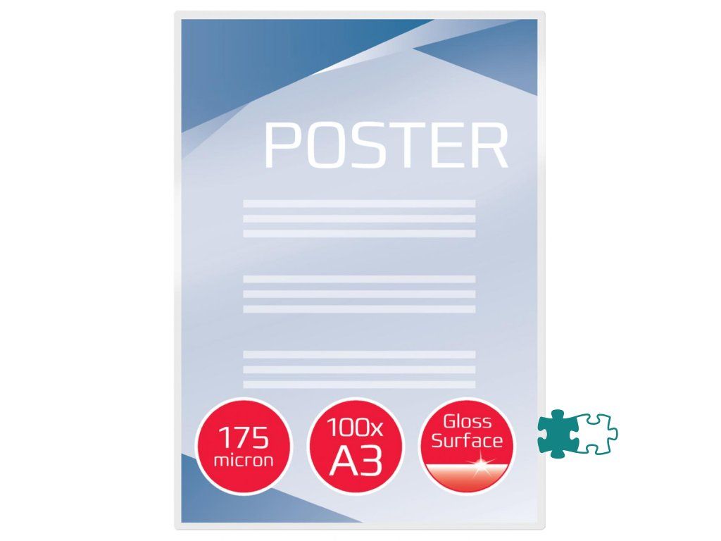 Praktické riešenie pre každodenné použitie chrániace a zdokonaľujúce hodnotné listy prezentácií, referenčných zoznamov, produktových listov, upozornení a pod. Lesklé vyhotovenie, hrúbka 2 × 175 mikrónov. Formát A3. Balenie po 100 kusoch.Dodatočné parametre