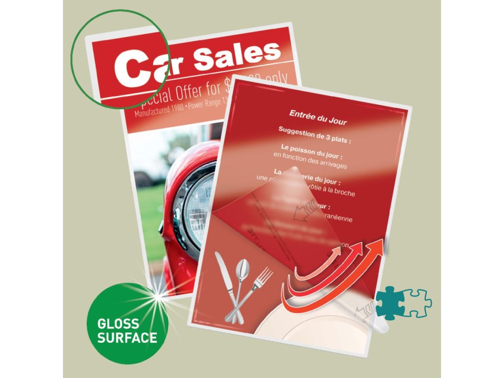 - Dlhodobá ochrana dokumentu pred nečistotou, tekutinou a vlhkosťou. Štandardná tuhosť laminácie.