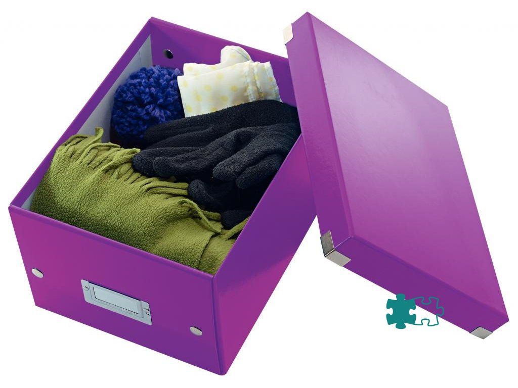 Univerzálna malá archivačná krabica (pre formát A5). Skladacia pre úsporu miesta, keď sa nepoužíva. Rámik na popisovací štítok. Laminovaný povrch a kovové rohy pre lepšiu a trvalejšiu ochranu. Moderný design, ktorý sa bude skvelo vynímať v každej kancelárii.Jednoduché zloženie a vysoká stabilita vďaka vylepšenej konštrukcii krabice. Veľkosť krabicle odpovedá bežným kancelárskym rozmerom (na formát A5). Dodajte svojmu pracovnému miestu alebo domácnosti farbu a skombinujte krabicu s ostatnými kancelárskymi výrobkami z radu Leitz WOW. Rámik na štítok pre ľahké popisovanie. Materiál pevný kartón potiahnutý polaminovaným papierom. Vnútorné rozmery (Š x V x H): 200 x 148 x 250 mm. Farba purpurová.Dodatočné parametre