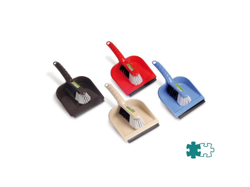 Súprava - metlička so syntetickými štetinami a lopatka s gumovou lištou. Mix farieb - hnedý, modrý a červený.Dodatočné parametre