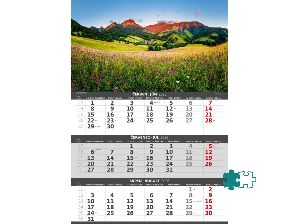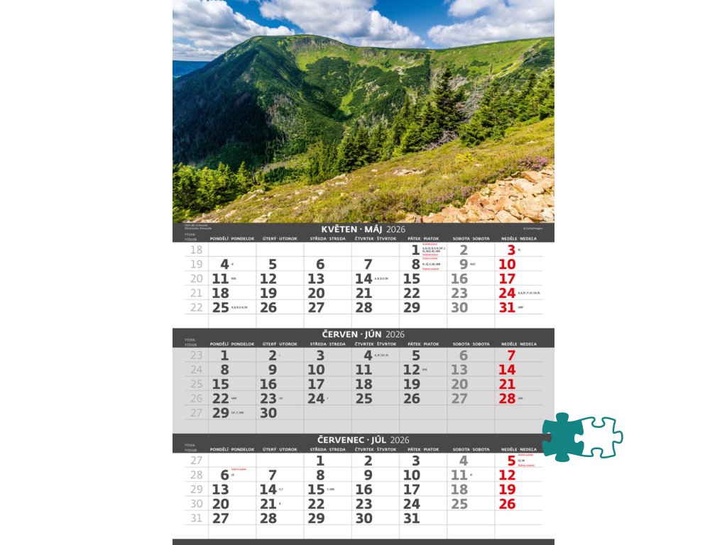Nástenný kalendár 3-mesačný Hory 31,5 x 45 cm 2026