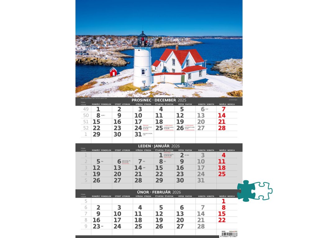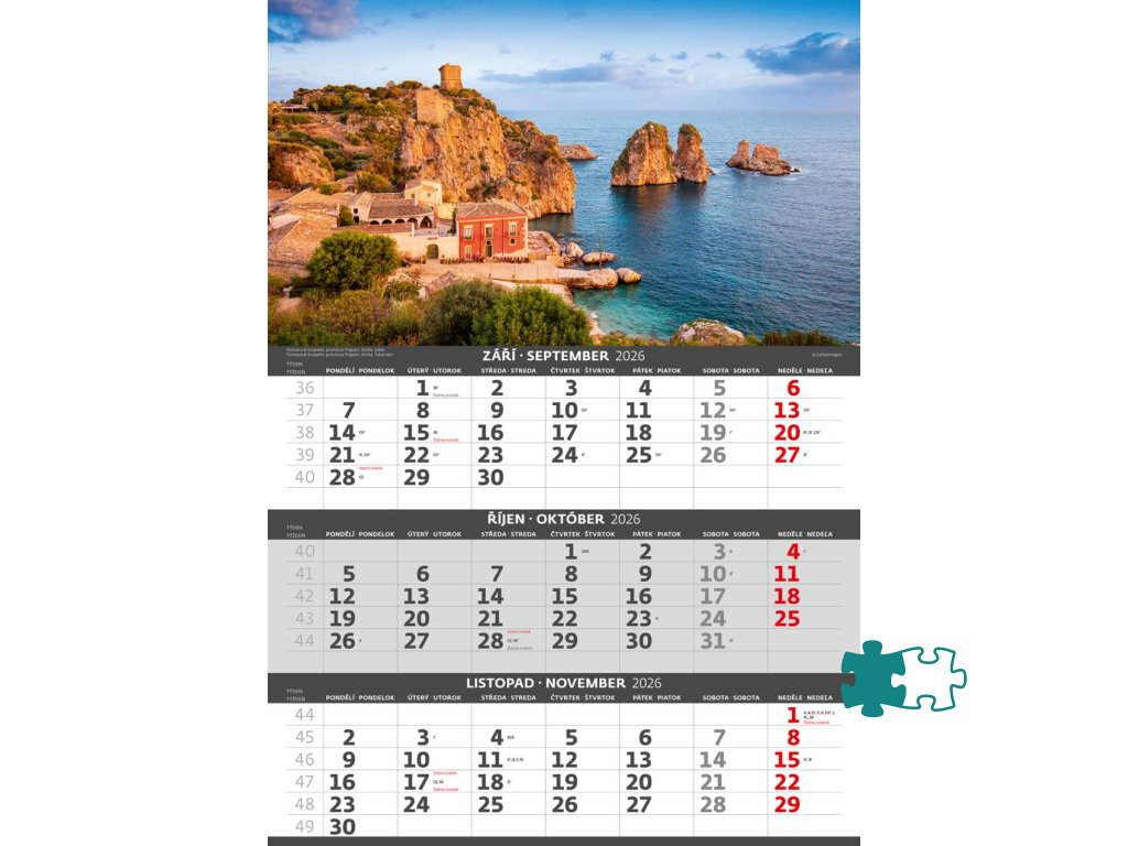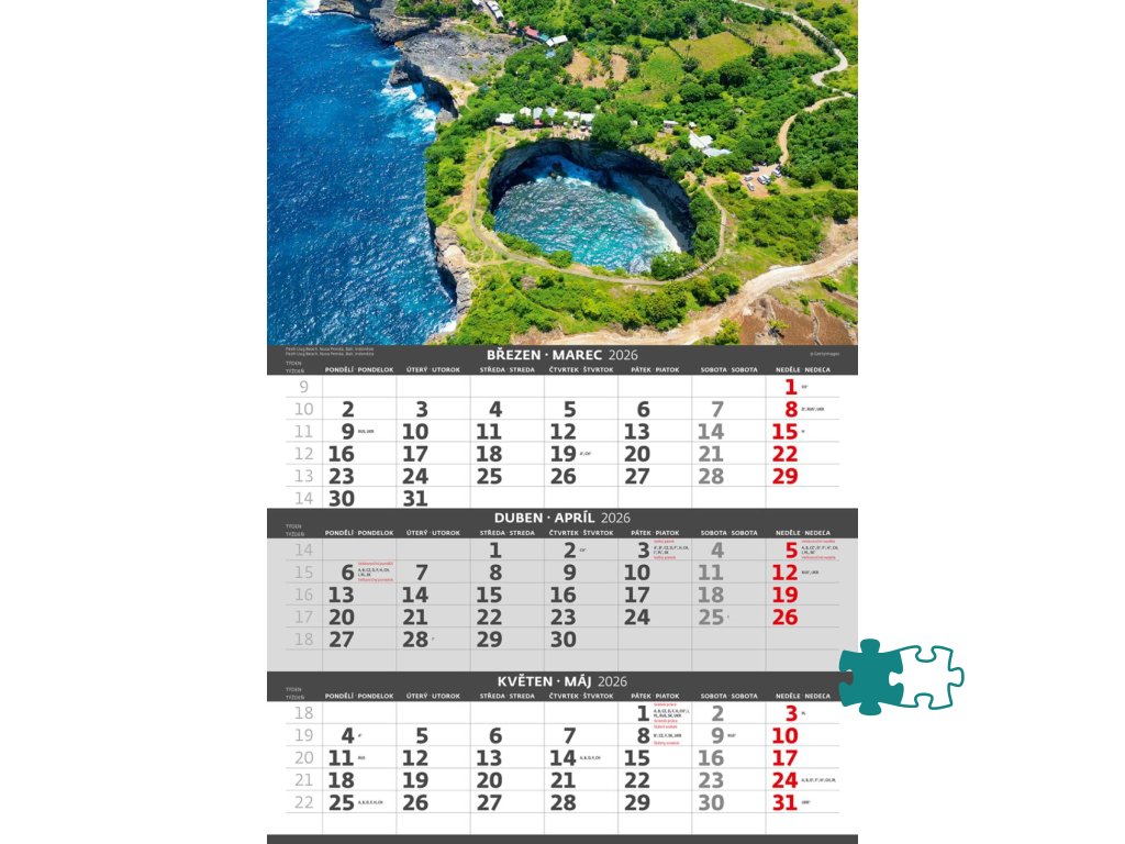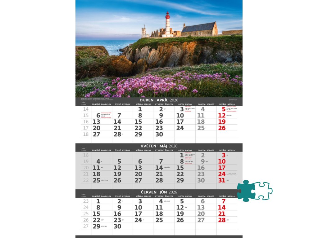 Nástenný kalendár 3-mesačný Pobrežie 31,5 x 45 cm 2026