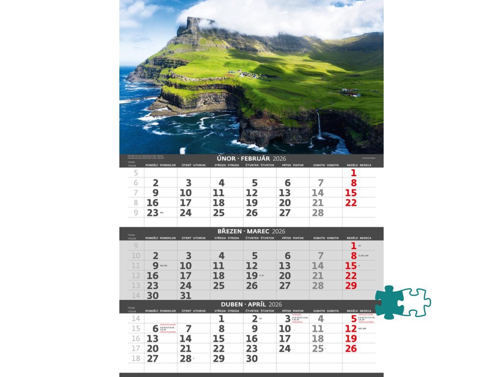 Formát kalendára: 31,5 x 45 cmKalendárium: české/slovenské trojmesačné so sviatkami európskych štátov (CZ / SK / A / B / D / F / H / CH / I / PL / RUS / UKR)