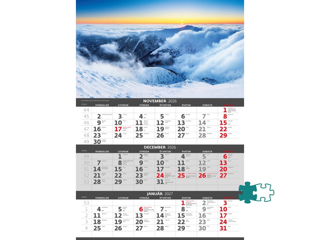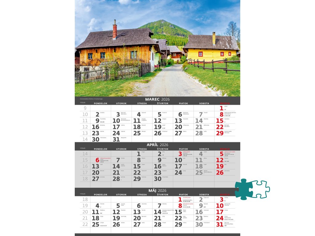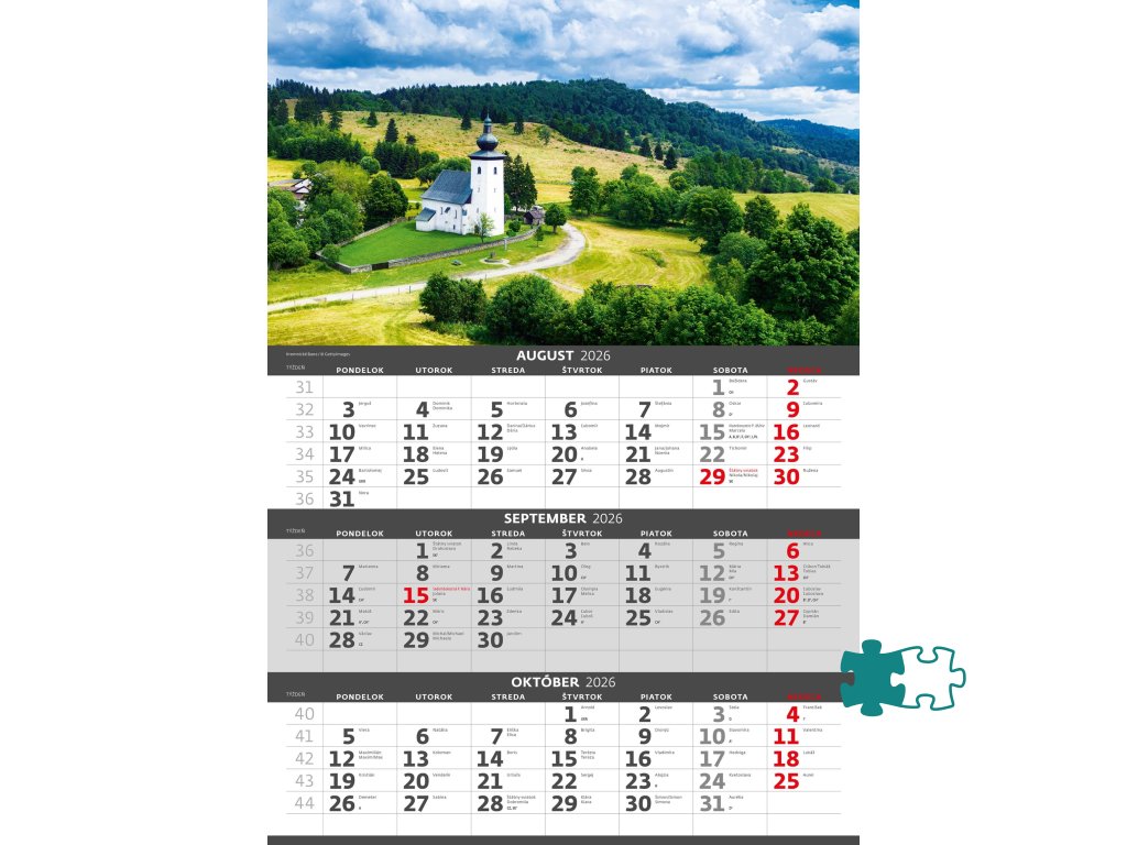 Nástenný kalendár 3-mesačný Slovensko 31,5 x 45 cm 2026