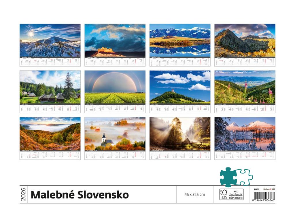 Nástenný kalendár Malebné Slovensko 45 x 31,5 cm 2026