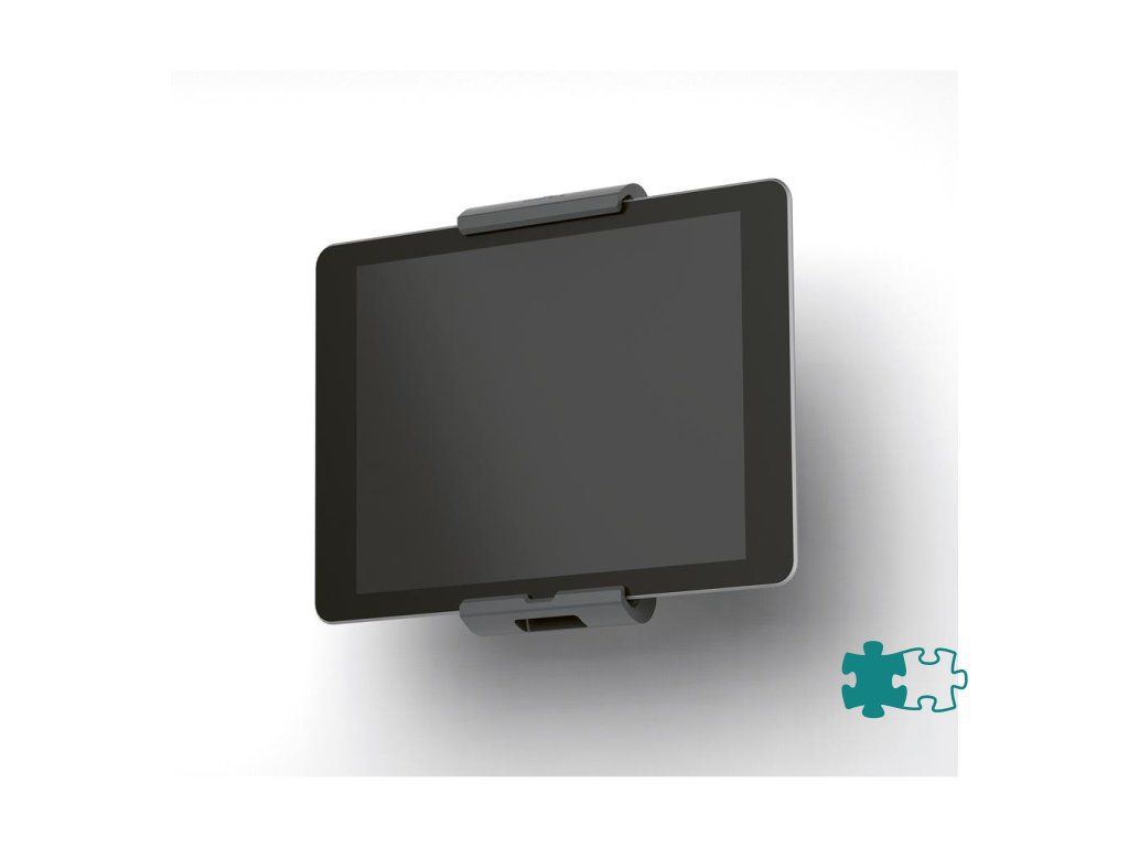 Rotačný stojan 360 ° na stenu na tablety od 7 do 13 ˝ na výšku alebo na šírku s jednoduchým vkladaním a vyberaním tabletu. Uchytávacie body po 90 °, ochrana pred bočným vybratím tabletu, nosné rameno s premenlivým uhlom sklonu od − 6 ° do + 46 °, dosah ramena 365 mm s rozsahom otáčania 180 °, symetrické otváranie držiaka od 160 do 275 mm. Otvor v stojane slúži ako výstup pre nabíjací kábel. Uzamknutie držiaka pomocou špeciálneho kľúča, silné a bezpečné upevnenie na stenu, jednoduchá montáž. Materiál hliník, ASB. Rozmery 85 × 50 × 180 mm.Dodatočné parametre